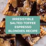 These Salted Toffee Espresso Blondies combine rich espresso flavor with homemade toffee bits and chunks of semi-sweet chocolate for an indulgent twist on classic blondies. The balance of brown sugar sweetness, buttery toffee crunch, and a sprinkle of flaky sea salt makes these decadent bars perfect for dessert or a special treat.