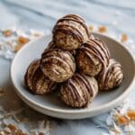 These Samoa Cookie Protein Balls capture the beloved flavors of the classic Girl Scout treat in a healthy, no-bake snack. With toasted coconut, caramel-like dates, pecans, and a drizzle of dark chocolate, they’re satisfying and packed with protein. Perfect for a quick bite that tastes like a dessert but fuels your day.