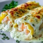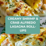 Keywords: Shrimp lasagna roll-ups, Crab Alfredo lasagna, seafood pasta bake, creamy Alfredo roll-ups, cheesy lasagna rolls, seafood Italian recipe