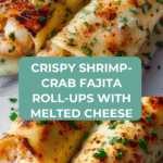 Shrimp-Crab Fajita Roll-Up Bombs are a delicious and easy-to-make Tex-Mex inspired appetizer or snack. These handheld rolls feature a flavorful mix of sautéed bell peppers, onions, seasoned shrimp, and crab meat, all melted together with Monterey Jack cheese inside warm flour tortillas. They’re pan-toasted to golden crisp perfection and served with tangy sour cream and fresh cilantro, making them perfect for parties, snacks, or a quick meal.