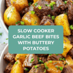 Keywords: slow cooker, slow cooking, garlic beef bites, beef stew meat, baby potatoes, garlic butter, seasoned beef, comforting meal, easy dinner, crockpot