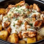 This Slow Cooker Garlic Parmesan Chicken and Potatoes recipe is a comforting and easy meal featuring tender chicken breasts, seasoned potatoes, and a creamy garlic parmesan sauce, all slow-cooked to perfection and topped with melted mozzarella cheese. Perfect for busy weeknights, this dish offers rich flavor with minimal effort and is highly adaptable for various dietary needs.