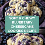 These Soft & Chewy Blueberry Cheesecake Cookies combine the creamy richness of cream cheese and sweet bursts of fresh blueberries with optional white chocolate chips, resulting in a chewy, tender cookie perfect for any occasion. They bake to golden edges with soft centers, delivering a luscious cheesecake flavor with fruity freshness in every bite.