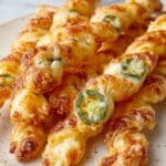 These Spicy Jalapeno Popper Twists feature flaky puff pastry twisted around a creamy, cheesy filling with a kick of jalapeno heat, perfect as a crowd-pleasing appetizer or party snack.