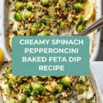 This Spinach and Pepperoncini Baked Feta Dip is creamy, cheesy, and loaded with zesty flavor. Made with feta, mozzarella, Greek yogurt, and tangy pepperoncini, it bakes into the ultimate party appetizer. Serve it warm with pita chips or crostini for a guaranteed crowd pleaser!