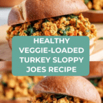 This Veggie-Loaded Turkey Sloppy Joes recipe offers a delicious, healthy twist on the classic sloppy joe by incorporating grated carrot, zucchini, and chopped spinach into a savory ground turkey sauce seasoned with tomato paste, brown sugar, and Worcestershire. Perfectly balanced and packed with nutrients, these sloppy joes are served on whole wheat buns, making it a wholesome, family-friendly meal that comes together quickly on the stovetop.