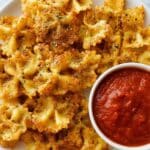 These viral air-fryer pasta chips are a unique and addictive snack idea that’s crunchy, flavorful, and easy to make. Using cooked pasta seasoned with olive oil, parmesan cheese, Italian seasoning, garlic powder, and sea salt, they’re air-fried to golden perfection. Serve with marinara sauce for a delightful dipping experience perfect as a fun appetizer or savory snack.