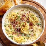 This White Lasagna Soup brings all the comforting flavors of traditional lasagna into a warm, creamy soup. Featuring crispy bacon, tender rotini pasta, fresh spinach, and a luxurious blend of ricotta, mozzarella, and Parmesan cheeses, this cozy dish is perfect for a quick and satisfying meal that’s ready in about 30 minutes.