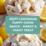 The Zesty Lemonade Puppy Chow is a quick and easy citrus-infused treat, perfect for summer gatherings or as a sweet snack to brighten your day. Made with Rice Chex cereal, white chocolate, lemon zest, and powdered sugar, this recipe delivers a delightful combination of crunch, tang, and sweetness.